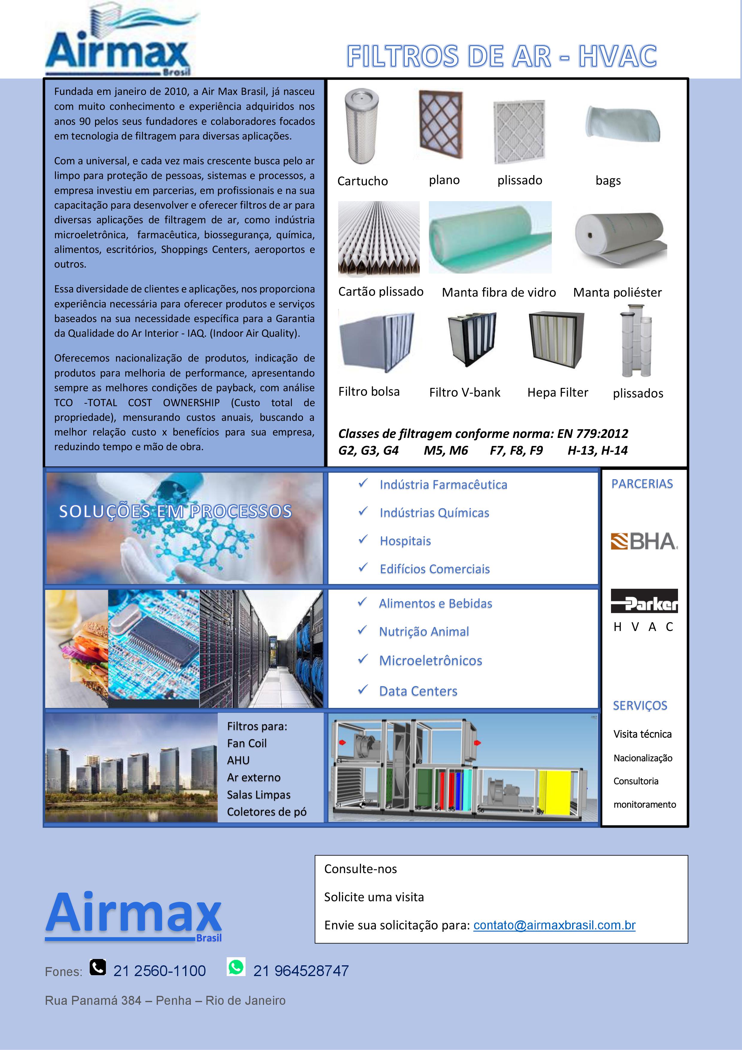 Filtros de Ar Condicionado Central Filtros para Industrias Filtros para AVAC Filtros para HVAC Filtros para Cabines de Pintura Filtros para Cabine de Jato de Granalha