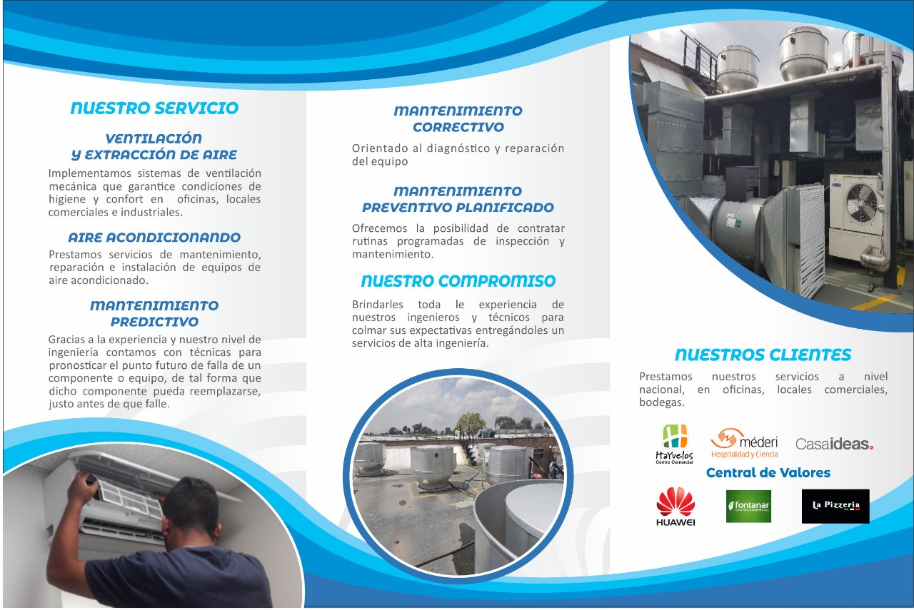 Aires 3D es una empresa especializada en el diseño, desarrollo, fabricación, venta, Instalación y mantenimiento de sistemas de ventilación mecánica y aire acondicionado, en el sector Residencial, comercial e industrial, que cuenta con un equipo de trabajo altamente calificado y comprometido garantizando a nuestros clientes confort, satisfacción y confianza.