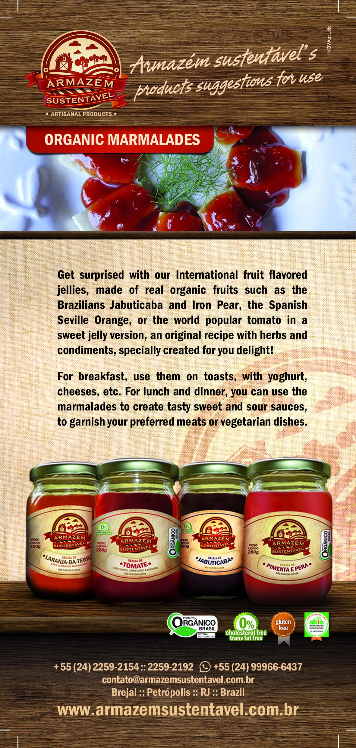 Inspired by the traditional Brazilian and International food delicacies of the old warehouses, our production focuses on sustainability and fair trade issues. • Is located in Brejal -, a rural area of the Imperial City of Petrópolis, one of the most important Historical Sites of Latin America - the biggest organic food production region in the state of Rio de Janeiro, and now a nationwide reference in these activities. • Situated at an altitude of 1,000 meters above sea level, it is surrounded by native Atlantic Forest and by several fresh water springs, which helps guarantee the quality and the abundance of its products. • Our factory is installed on a 21,000 sq. meters piece of certified organic land, in a valley with breathtaking view of the mountains around Brejal. Its main building measures 400 sq. meters of factory grounds, with up to date sustainability characteristics as, for example, routines and installed devices for the protection of water and energy sources of the region, and is surrounded by organic vegetable and herbs gardens.