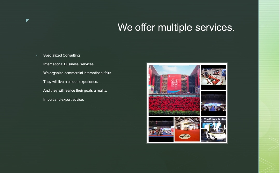 Realizamos Consultorias, Asesorias Internacionales de Productos, Realizamos Ferias Internacionales y nacionales.