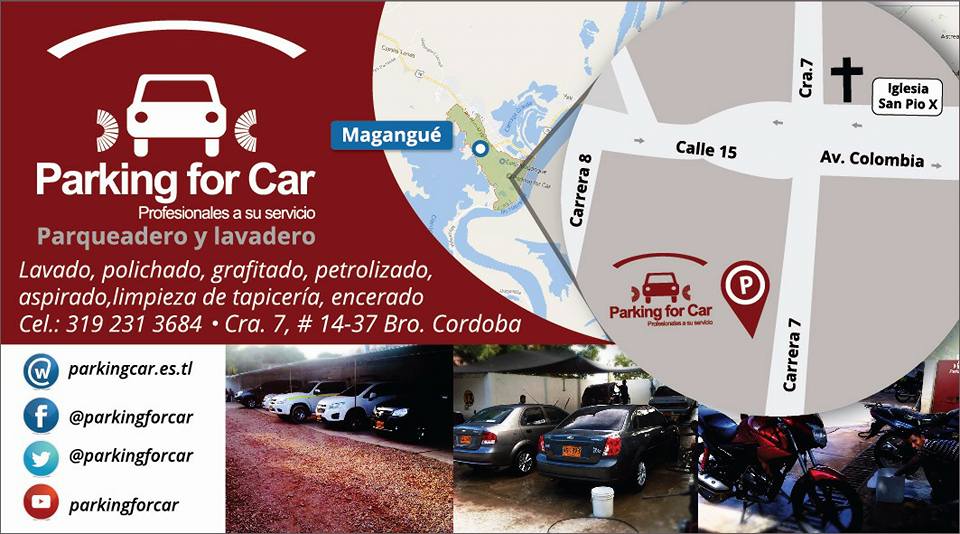 Somos una empresa Magangueleña que presta los servicios de Parqueadero y Lavadero a vehículos (Motocicletas, Automóviles, Camperos y camionetas) en el Municipio de Magangué. Contamos con 550 metros cuadrados divididos en un área para Parqueadero, una para lavado de vehículos y una sala de esperas.