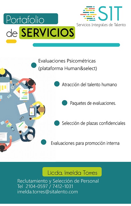 Somos una empresa de servicios de Gestion de Talento Humano, Reclutamiento y Selección de personal, evaluaciones psicometricas, talleres vocaciones, orientación vocacional, asesoria laboral.