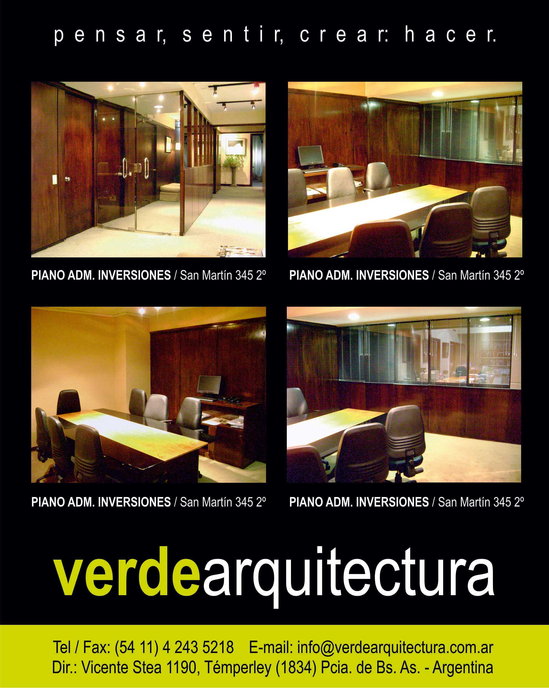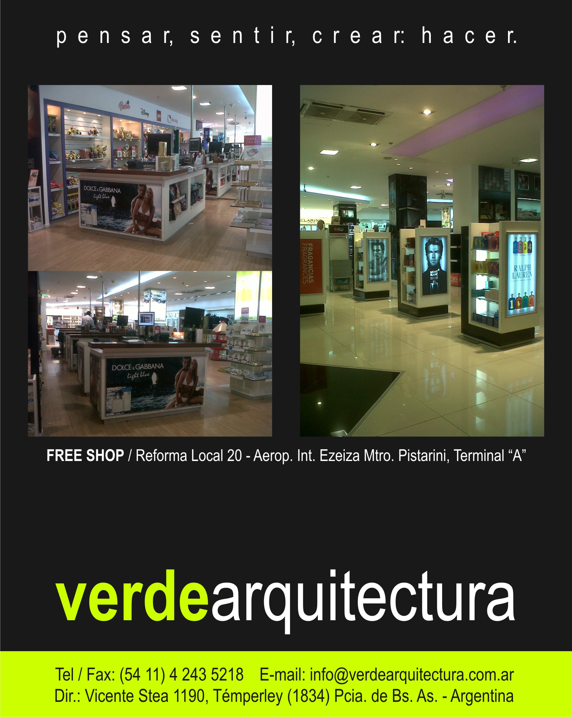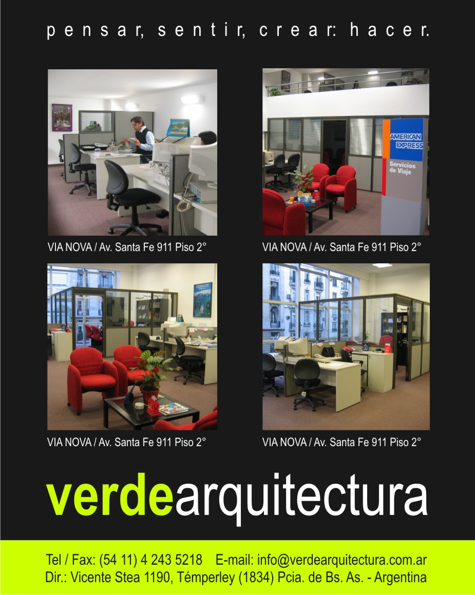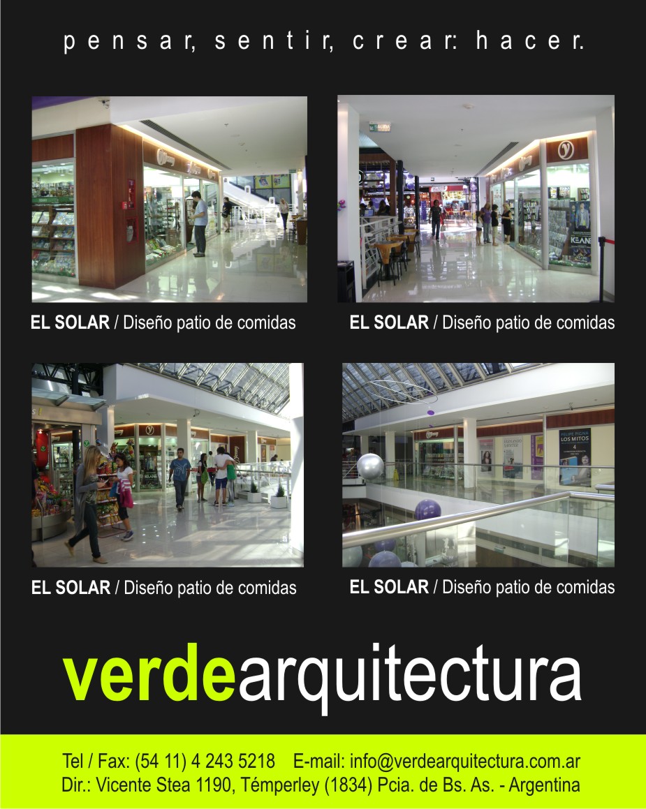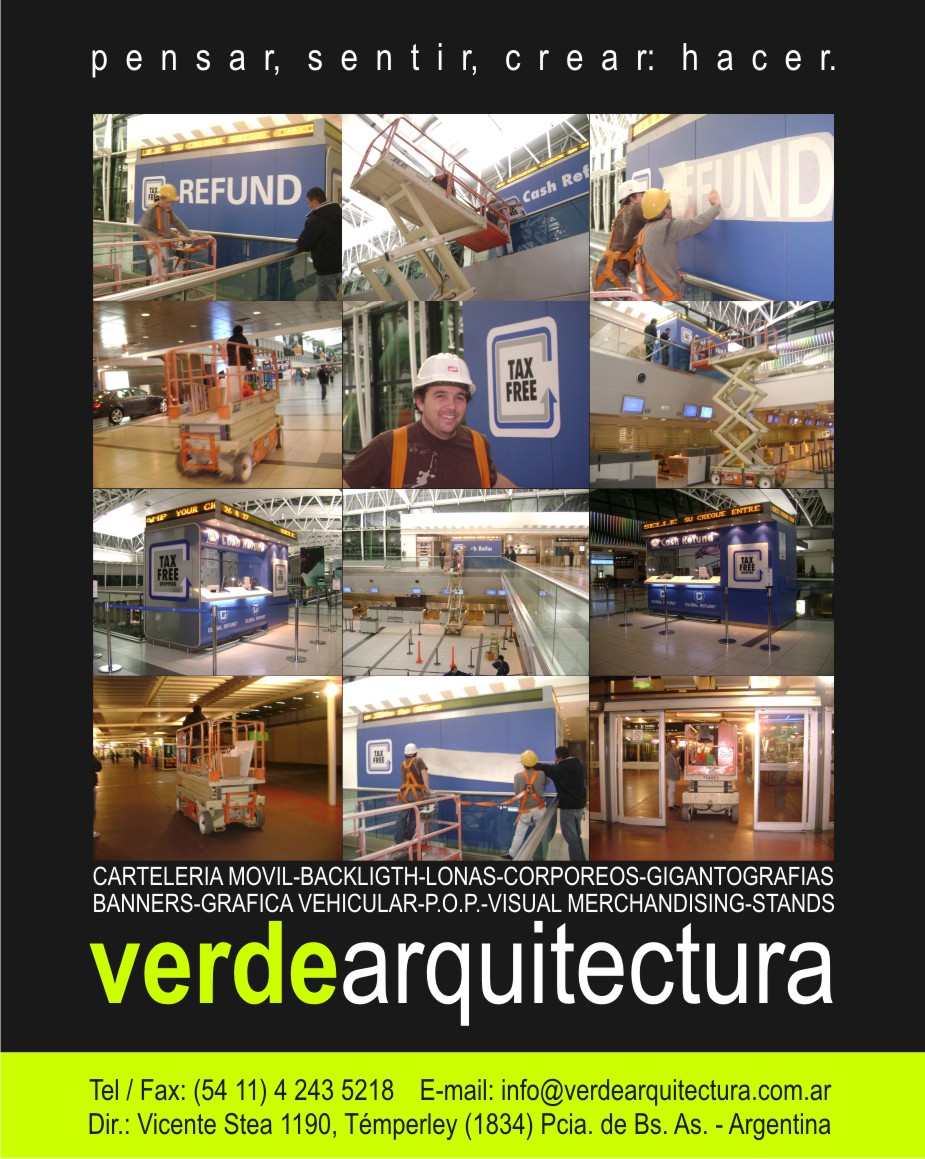 verdearquitectura® se especializa en diversas áreas del diseño y la construcción. Nuestra experiencia se desarrolló junto a las empresas que nos confiaron su imagen y sus obras, tales como, Duty Free Shop, Gallery Shop, Monsanto, Tax Free, Assist Card, Metropolitan Life, El Solar De La Abadía Shopping y Banco Piano entre otros. El éxito de un proyecto tiene que ver, tanto con el diseño, como, con el proceso que se ha seguido para su realización. Brindamos nuestras mejores ideas y soluciones junto a una breve reseña sobre el alcance de nuestro servicio profesional: Proyecto Ejecutivo / Dirección de Obra Matrícula Ciudad Autónoma de Bs. As.: MAT. CPAU Nº 17.879 Matrícula Pcia. de Bs. As.: MAT. CAPBA DIST. II Nº 24.530 1 / Proyecto Alcance: Relevamiento de las expectativas de los límites, requerimientos y objetivos planteados por el cliente. Diagnóstico: Análisis, relevamiento y diagnóstico del recurso físico. Reunión en equipo con las áreas involucradas. Comunicación: Dirigida por objetivos. Planificación y distribución de las comunicaciones. Reportes de desempeño. 2 / Anteproyecto Croquis preliminares. Anteproyecto. Modificaciones del anteproyecto. Elaboración de la documentación técnica del proyecto. Asesores profesionales. Planos aprobados por el cliente. Trámites municipales de proyecto y dirección de obra. 3 / Proyecto Ejecutivo Proyecto de instalaciones, estructuras y aire acondicionado. Asesores profesionales. Planos aprobados por el cliente. Confección de listado de tareas según el proyecto aprobado por el cliente. Pedido de cotización. Análisis comparativo. Armado de presupuestos. Cronograma de obra. Plan de inversiones. 4 / Dirección de Obra Interpretación de los planos y la documentación técnica que forma parte del proyecto. Plan de obra. Control del cumplimiento del contrato de obra. Revisión, extensión y visado de los certificados de pagos. Recepción provisoria y definitiva de obra. 5 / Arq. Corporativa y Comercial verdearquitectura® ofrece una eficaz herramienta que sistematiza los mensajes y abarca, desde el proyecto de arquitectura, hasta el diseño de los elementos visuales de la identidad corporativa, el diseño ambiental de sus instalaciones, el diseño de la señalización y elementos del equipamiento transformando sus propuestas de negocios en proyectos de inversión rentables. Diseñamos Locales, Showrooms, Stands, Franquicias y Manual de Franquicias. 6 / Arq. Gastronómica verdearquitectura® diseña el lay-out conforme al plan de negocios, programación de tareas, recursos humanos, identidad y comunicación, proyecto de instalaciones, equipamiento, distribución, depósito, lavado y punto de venta. 7 / Arq. Institucional - Space Planing verdearquitectura® diseña oficinas a partir del análisis de los procesos, recursos, necesidades y la imagen para lograr estándares de eficiencia organizacional y ambientación corporativa. Asesoramos en evaluación de oportunidades de traslados y relocalizaciones, análisis de los recursos humanos, organigrama funcional y jerárquico, búsqueda de inmuebles, prefactibilidad técnico-financiera, normativas, gestión ante organismos, estimación de costos, equipamiento y mudanzas. 8 / Arq. Industrial verdearquitectura® lo asesora en el diseño y ejecución de proyectos industriales buscando maximizar el valor de las inversiones de nuestros clientes, comprometernos con el mejoramiento continuo de los servicios con los mejores estándares. 9 / Arq. Publicitaria verdearquitectura® ofrece diseños dinámicos, creativos y lúdicos destinados a crear experiencias de marca adaptando los espacios físicos a los requerimientos de la promoción cubriendo el proceso de logística y realización. Realización de Lonas, Banners, Backligths, Corpóreos, Señalética, POP, Gigantografías, Cartelería móvil, Gráfica vehicular y Visual merchandising.