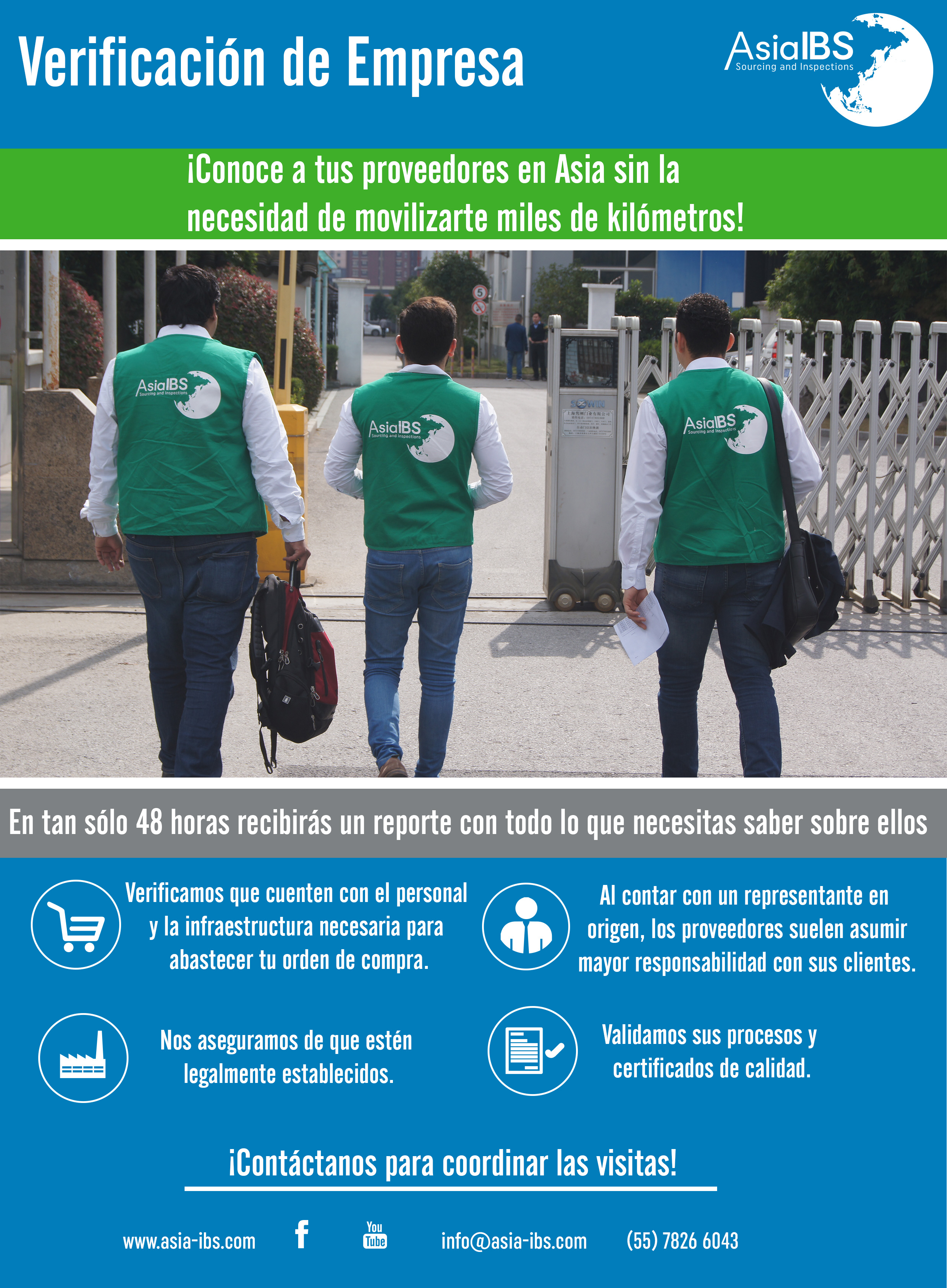 ¿Quiénes somos? Asia IBS es una empresa líder en la realización de inspecciones de calidad y desarrollo de proyectos, asociada con marcas, tiendas e importadores alrededor del mundo para asegurar, administrar y optimizar su cadena de abastecimiento. Fundada en H.K., cuenta con tres oficinas propias y con más de 120 empleados de diferentes nacionalidades. Además de que nuestra empresa se encuentra certificada con ISO 9001/2008, contamos con más de 100 inspectores distribuidos a lo largo de Asia, lo cual nos permite estar en cualquier fábrica en un plazo no mayor a 48 horas. Todos nuestros inspectores reciben una capacitación mínima de 120 horas por año y son administrados por auditores que se encargan de cumplir con estándares internacionales de calidad. ¿Qué hacemos? A través de nuestra cartera de servicios, estamos presentes en cada etapa de tu proyecto, localizamos a proveedores confiables, verificamos que estén legalmente establecidos, inspeccionamos su producción y estamos presentes durante la carga de la mercancía. Además, contamos con una red de socios estratégicos con servicios complementarios para coordinar el flete intermodal y despacho aduanal correspondiente. ¿Cómo lo hacemos? ¡Cada servicio es totalmente personalizado! Nos enfocamos en crear un “traje a la medida” que se ajuste a las necesidades de cada cliente y/o industria. De esta forma blindamos cada operación y nos convertimos en una parte integral de la cadena de suministro de nuestro cliente. Nuestros Servicios: Desarrollo de proveduría Gestión de compra Verificación de empresa Inspección de producción Control de calidad Inspección de carga Previo en origen http://www.asia-ibs.com/servicios.html