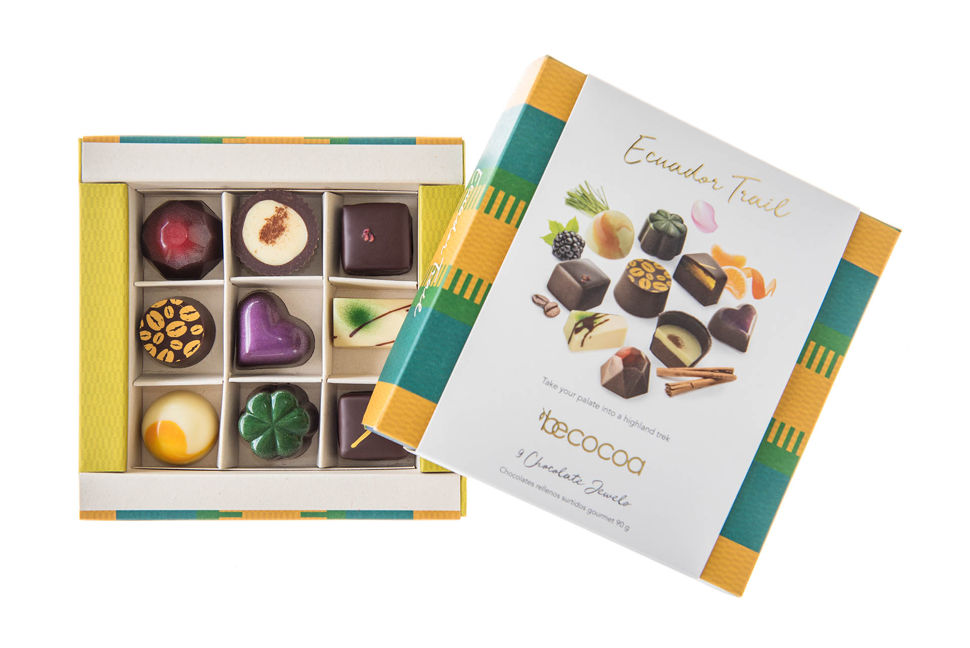 We are a small team of entrepreneurs passionate about cacao and chocolate, and we are promoting equality and biodiversity in Ecuador. Our challenge: to capture Ecuador in a box of chocolates, a place in which a huge diversity is condensed. A universe for the senses from colors, textures, aromas, sounds and flavors. We aim to transform our world Sustainable is the new synonym for the word respect we respect the limits of the land. Respect for the environment: ingredients produced by sustainable agriculture practices, select the most eco-friendly packaging. At BeCocoa we respect ourselves: fair employment for the people who produce it, collect it and prepare it. A responsible kind of prosperity. What is inside the box? The adventure of immersing yourself in the jungle, of walking through the mountains, of experiencing the sun captured in an Andean fruit or plant. To be enchanted with the Galápagos Islands. Each chocolate in this box is special because it is handmade. At BeCocoa we support vulnerable Ecuadorian women by giving them the opportunity to become experts in artisan chocolates. The women are highly trained in the technical aspects of chocolate, in the esthetics and design that makes them unique, attractive and delicious. This is why we say our chocolates are like a piece of chocolate jewelry. We share with tourists the conviction that the perfect complement to a travel experience is to get carried away by the taste. A chocolate filled with flavor is a trip for your palate. A taste of this chocolate will take you back to all the wonderful moments of your trip that you made through this incredible land and of its people. Chocolates loaded with flavor with the intention of capturing emotions. Ingredients characteristic of Ecuador are not only intense in flavor, but also stand out for concentrating healthy properties, such as antioxidants that are presented in greater amounts in fruits, grown at altitude and exposed to the sun of the Equator