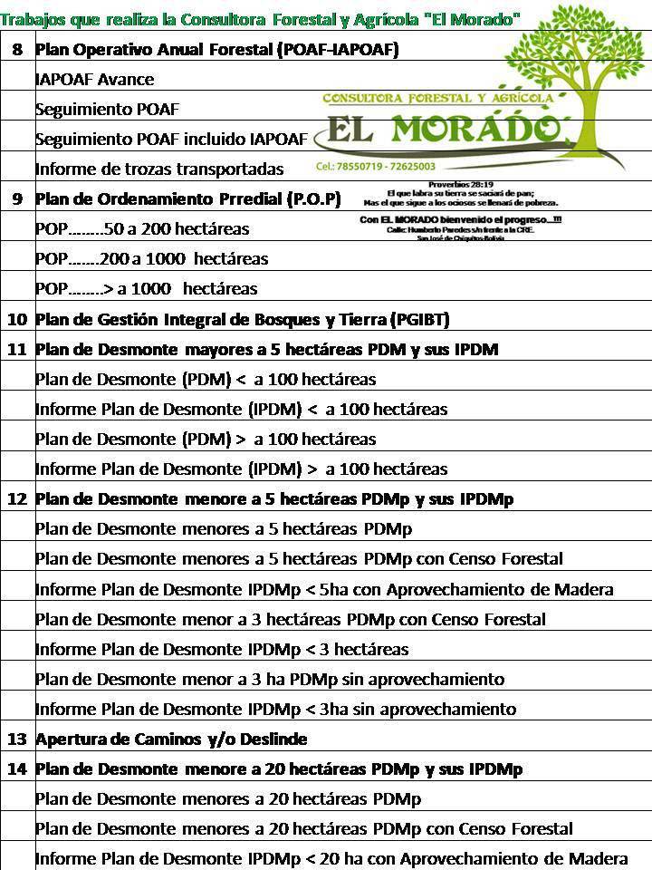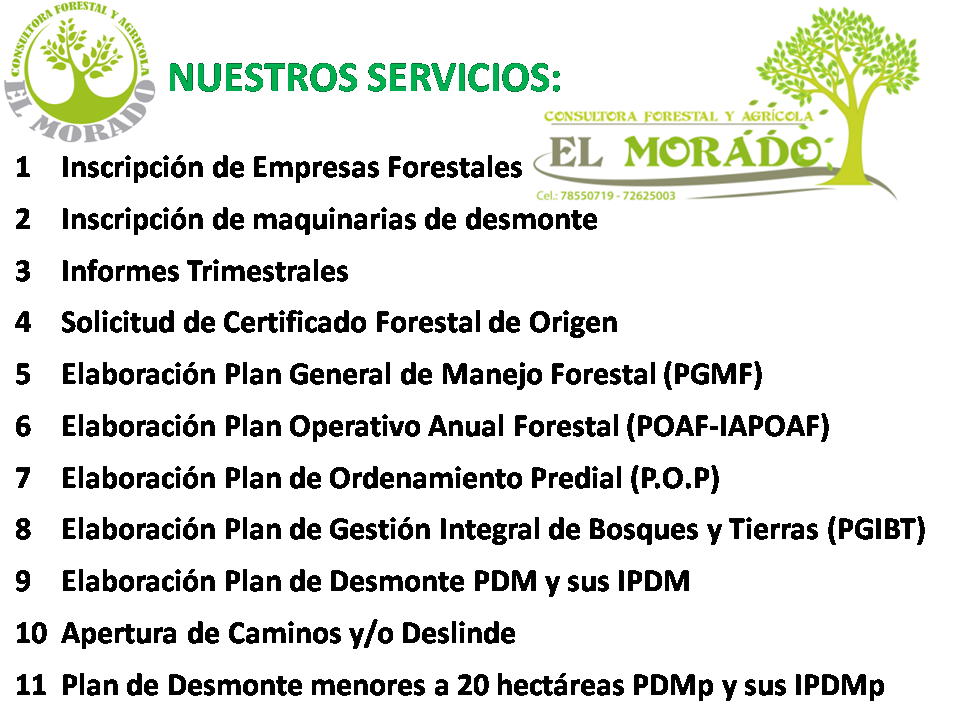 La Consultora Forestal y Agraria “El Morado”, le brinda los servicios profesionales de asesoramiento técnico para la obtención de permisos y trámites ante la ABT.