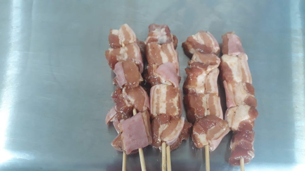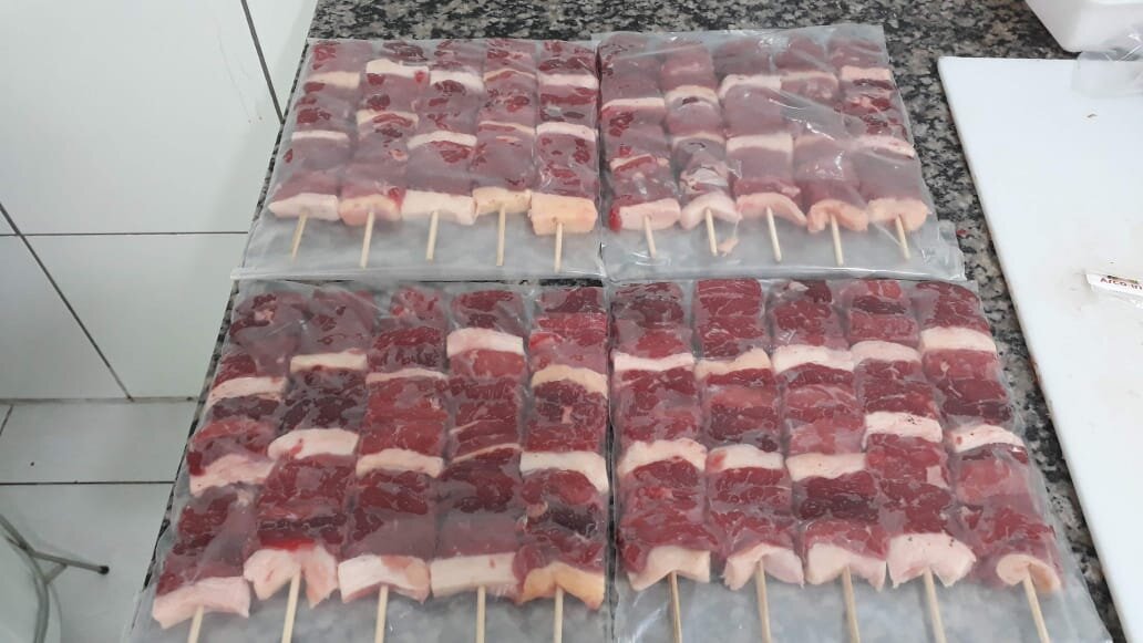 Fabricação de espetinhos de variados sabores \carne , frango e entre esses legumes e vegetais, queijos e seus derivados .