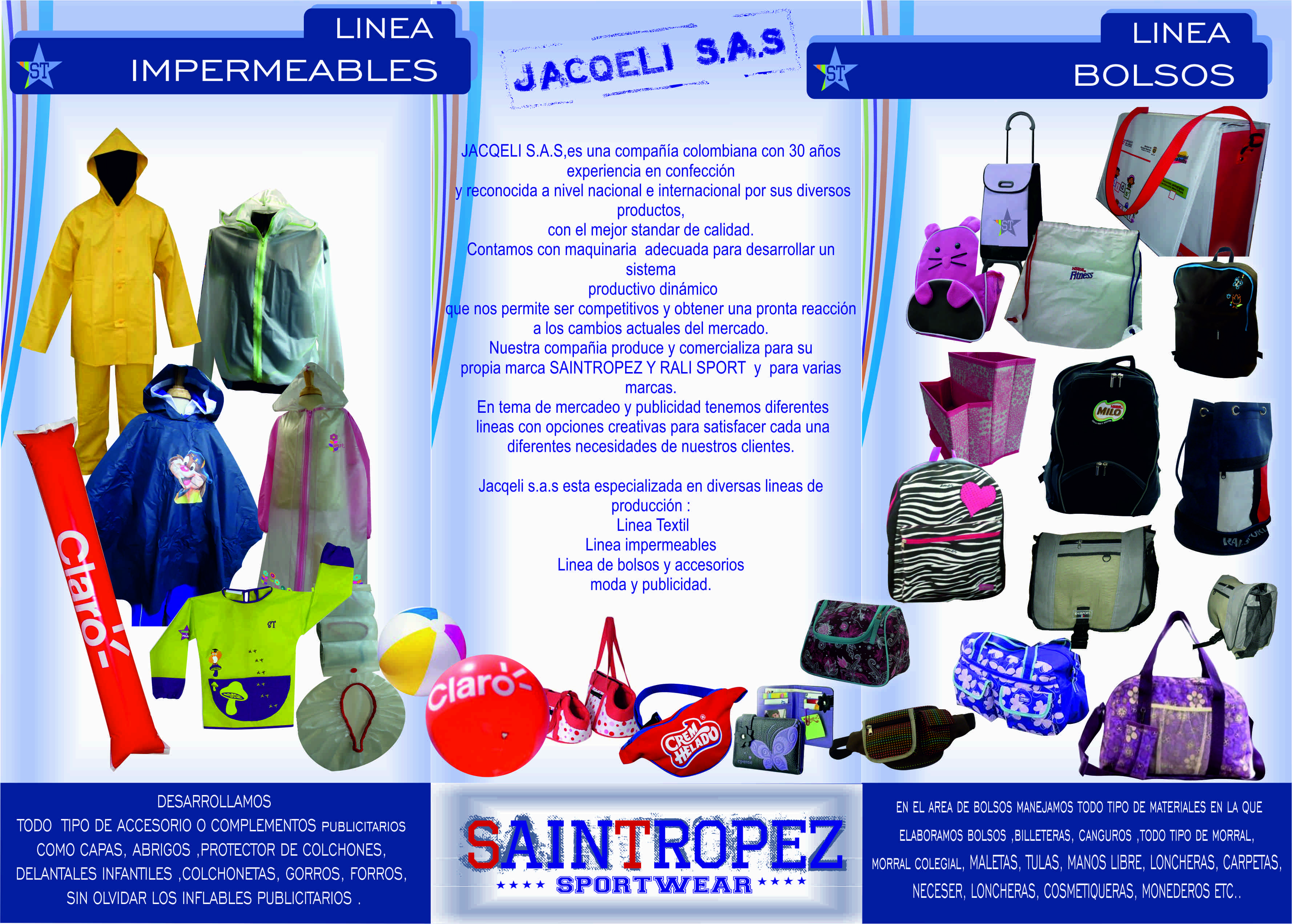 SOMOS UNA EMPRESA MANUFACTURERA QUE FABRICA PRENDAS DE VESTIR, MALETINES, MARROQUINERIA, IMPERMEABLES E INFLABLES