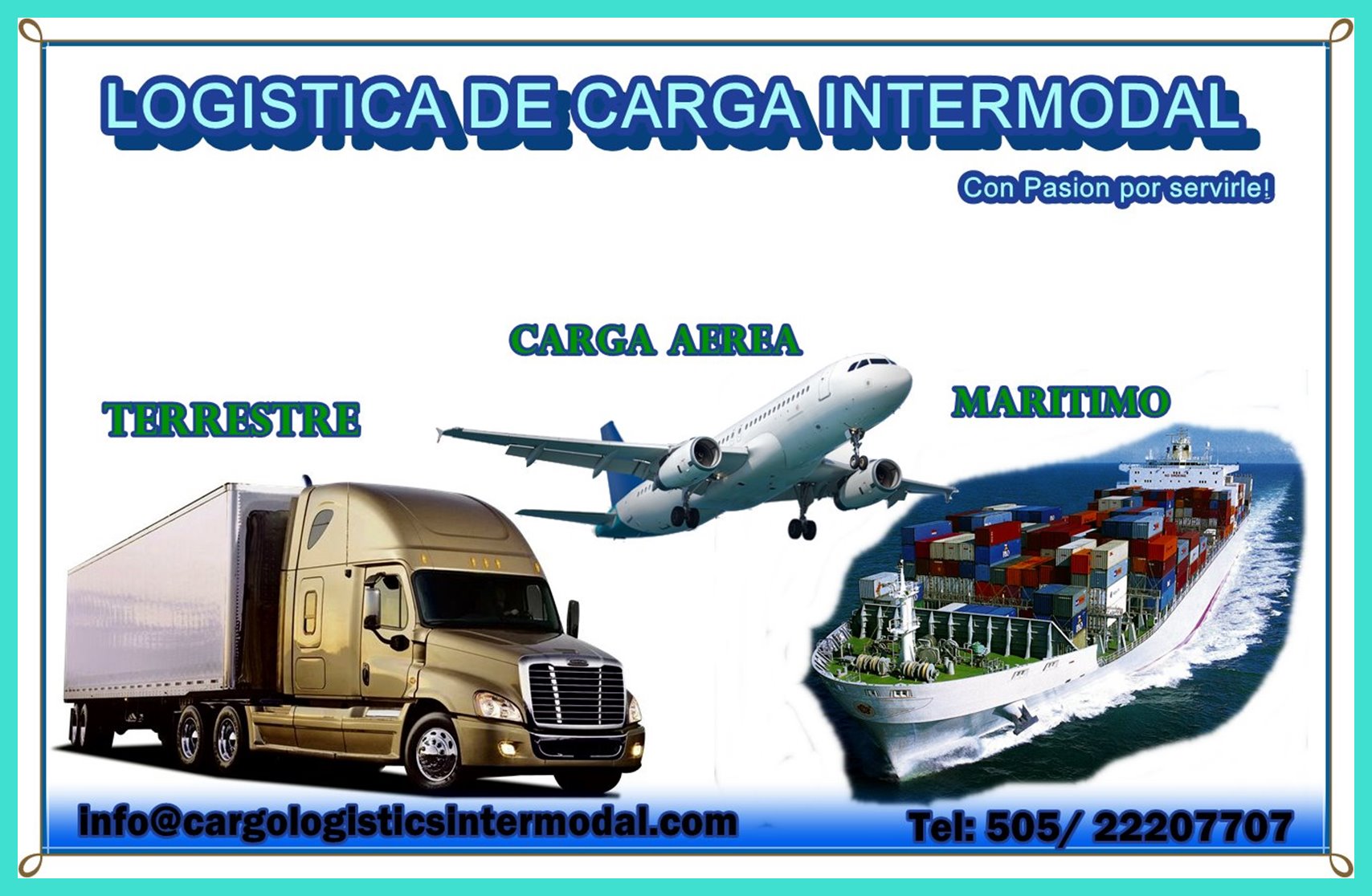 Somos agencia de Carga y courier especializado para mover carga aerea, maritima y terrestre, servicio puerta a puerta, agencia aduanera, consolidamos y desconsolidamos carga info@cargologisticsintermodal.com www.cargologsiticsintermodal.com Tel (505) 22207707 Managua, Nicaragua