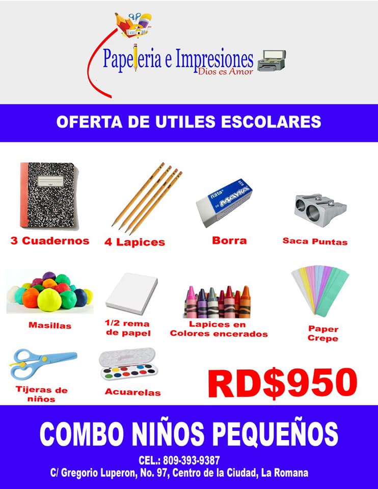 Ventas de Útiles Escolares, Impresiones, elaboración de carta y otros documentos, copias, scaneos, etc...