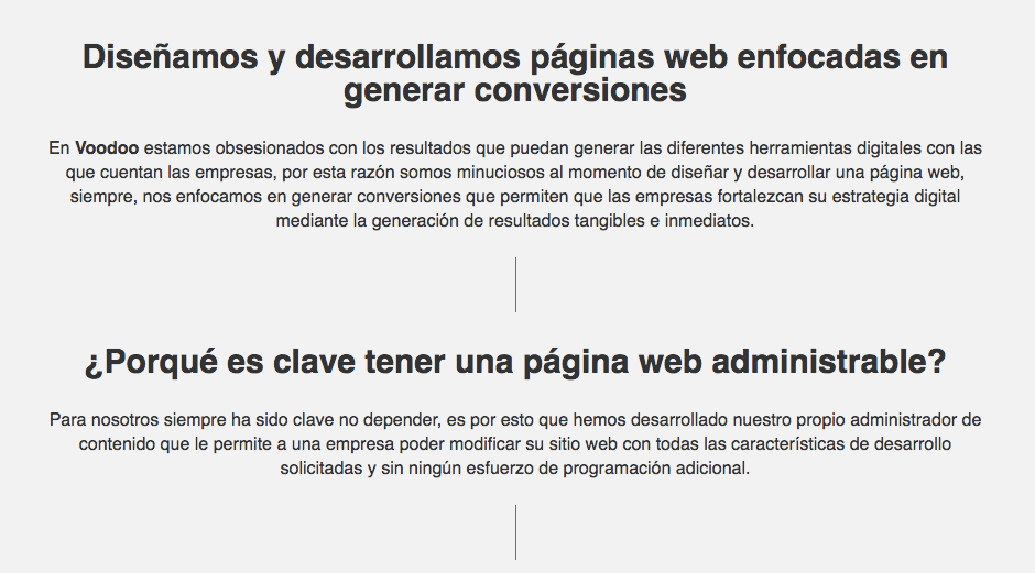 Durante años hemos trabajado en creatividad, siempre hemos estado hombro a hombro con diferentes agencias de publicidad, lo que nos ha permitido estructurar nuestro esquema de desarrollo enfocados en la efectividad de las comunicaciones desde los canales digitales. Este enfoque creativo, publicitario, de mercadeo y sobre todo el conocimiento sobre el desarrollo y las comunicaciones digitales hicieron mella en nuestras cabezas, así que decidimos emprender en lo que más nos gusta hacer, desarrollar plataformas de comunicación digitales ( Diseño Web, desarrollo de plataformas de ecommerce, plataformas web personalizadas, estrategias de marketing digital, capacitaciones en marketing digital, comercio electrónico, etc) que permitan crear verdaderas experiencias de marca y por ende resultados en el desempeño de nuestros clientes. Y aquí estamos…. hemos desarrollado miles de ideas que en algún momento nos parecieron descabelladas pero que hoy vemos con gusto que han funcionado y sobre todo les han funcionado a nuestros clientes. Y aunque lo parezca, detrás de cada cosa que hacemos existe una metodología, nuestra propia metodología, que hemos desarrollado durante años, extrayendo lo mejor de cada teoría de marketing digital y lo aplicamos en todo, absolutamente en todo. Parece magia, pero no lo es, es conocimiento, talento y buena energía para que las empresas logren sus verdaderos objetivos digitales.