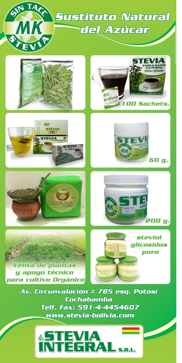 Agricultura y transformación de stevia. Venta de endulzante de stevia en diferentes presentaciones