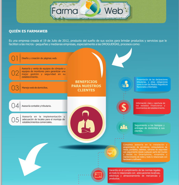 Desarrollo de software a la medida en diferentes lenguajes e programación y diferentes Bases de datos. ASP.NET, JAVA, PHP, HTML5, Bostrap, Mongo, DBmaria, Oracle, SQLserver. Androide, IOS. Además tenemos 3 sistemas de información maduros que comercializamos: 1. Software de administración Hotelera www.shotel.com.co 2. Sistema de matriculas y notas para estudiantes de colegios. 3. Software de administración deportiva.