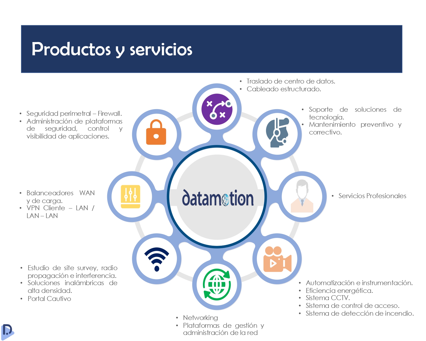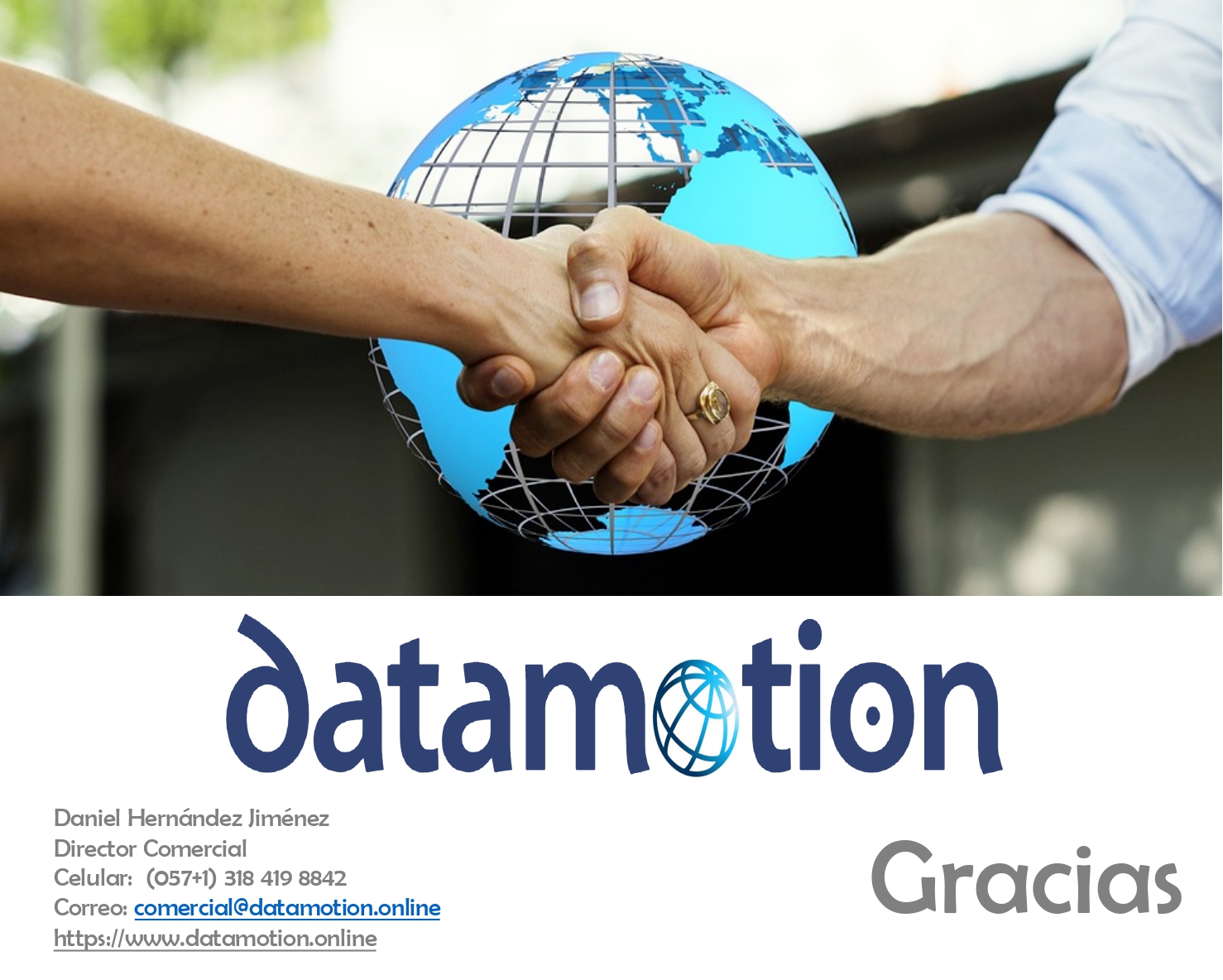 Datamotion es un equipo enfocado en ser un socio clave que materializa sus ideas de negocio en soluciones tecnológicas monetizables. Valores: • Calidad humana. • Simple • Flexible Desplegamos proyectos y operamos servicios de tecnología: • Ajustados a las necesidades y eficientes en costo. • Estables, escalables y de alto desempeño. • Con modelos financieros dinámicos según el tipo de empresa.