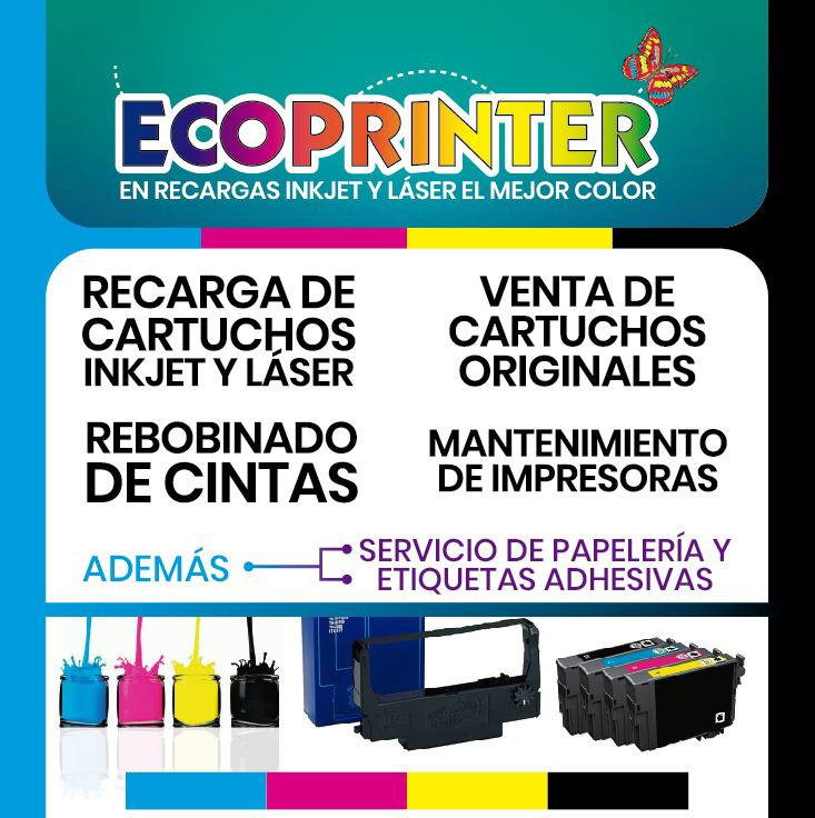 Venta y recarga de cartuchos y toner para todo tipo de impresoras, mantenimiento de impresoras y papeleria en general.