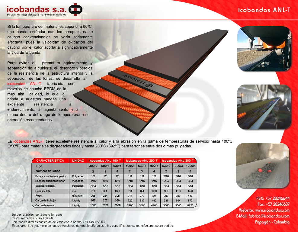 Producción y comercialización de bandas y soluciones para sistemas de transporte de materiales.