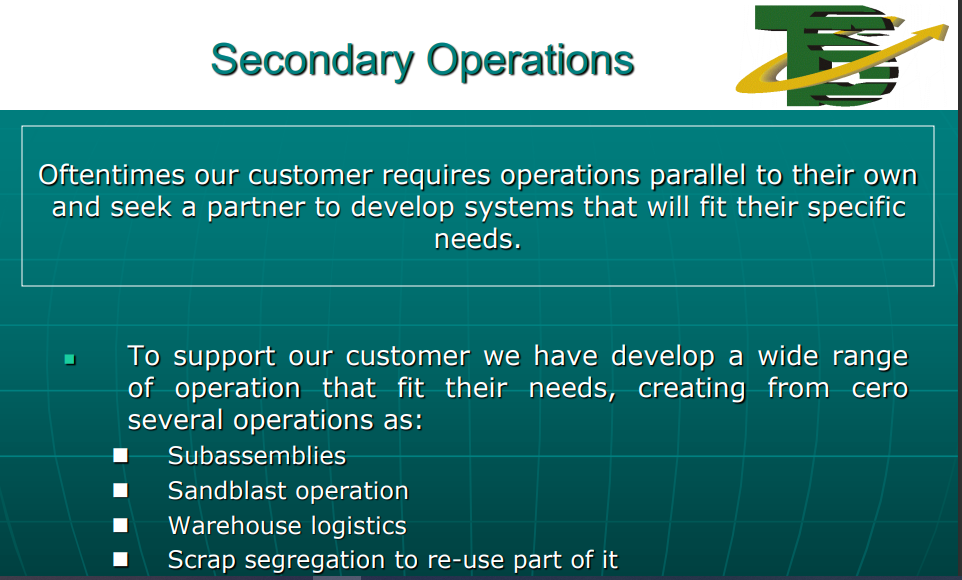 Brindamos soporte con operaciones y servicios secundarios a la industria manufacturera. Conscientes de las necesidades de las operaciones secundarias, nuestras soluciones brindan una gama de servicios y desarrollos diseñados para adaptarse a las necesidades de nuestros clientes.